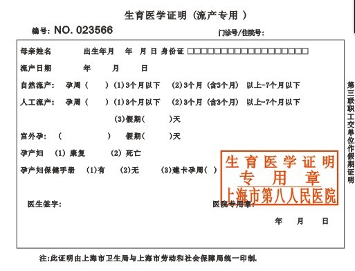 新华医院生育医学证明(流产专用)